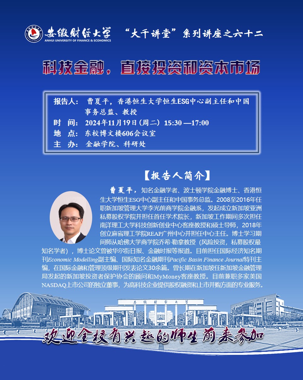 2024年11月19日:【“大千讲堂”系列讲座之六十二】科技金融,直接投资和资本市场