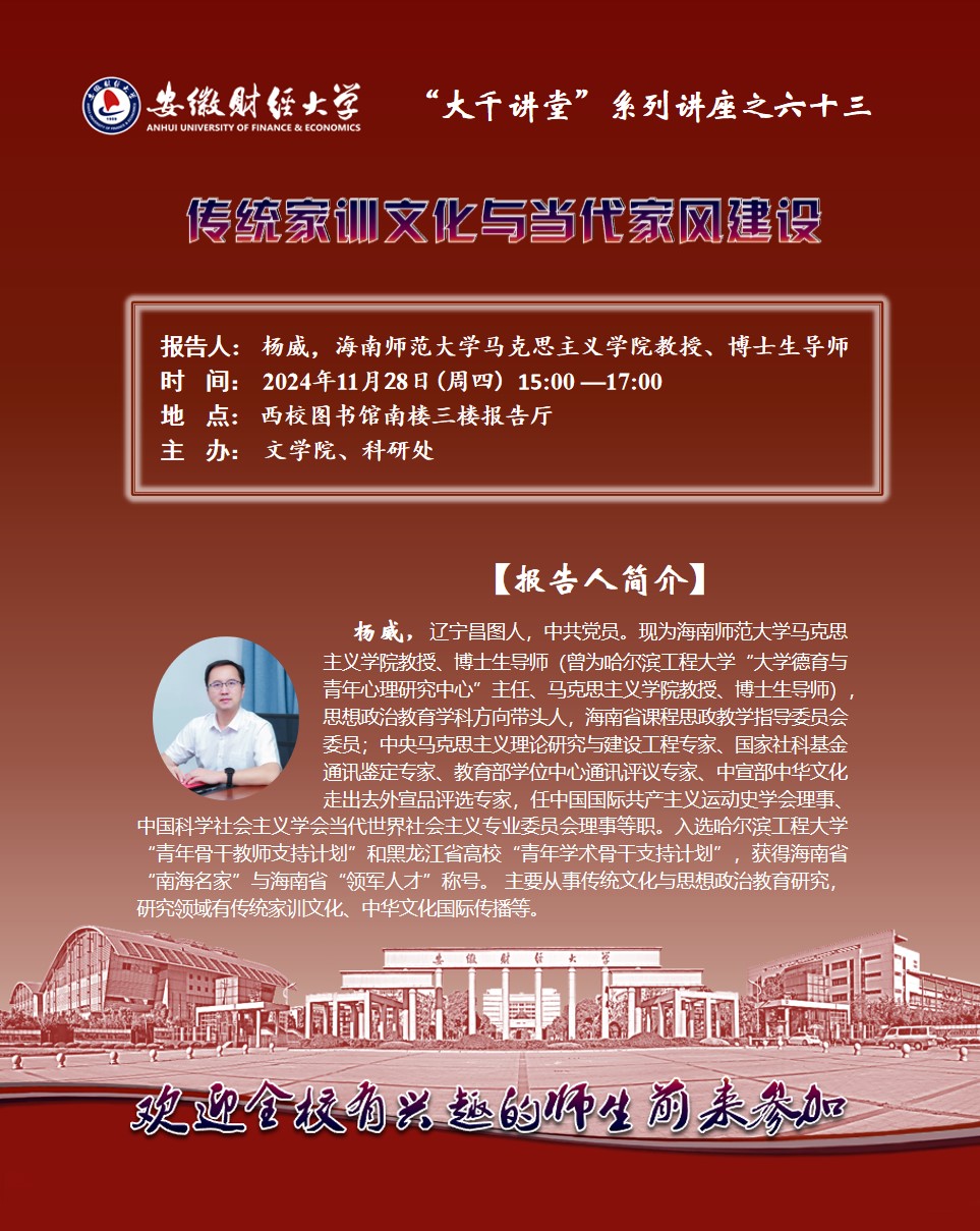 2024年11月28日:【“大千讲堂”系列讲座之六十三】传统家训文化与当代家风建设