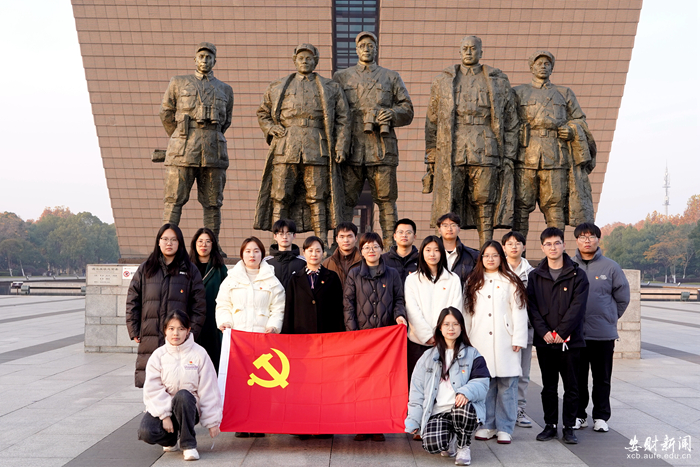 重温入党誓词,夯实思想根基。“我志愿加入中国共产党,拥护党的纲领……”,12月6日下午,宣传部党支部与管工学院学生管工类第二党支部师生党员来到合肥市渡江战役纪念馆开展“缅怀革命先烈 接续奋进前行”主题党日活动。在纪念馆一楼大厅,全体师生党员们面对鲜红的党旗,举起右手,铿锵有力地重温入党誓词。随后,在纪念馆讲解员的带领下,一件件珍贵的历史文物、一幅幅震撼的革命影像、一段段感人的斗争故事,共同勾勒出75年前渡江战役的艰难险阻和400万军民奋勇南渡的壮阔画面。通过讲解员生动的解说,全体师生党员深入了解了百万雄师过大江的历史事迹,共同上了一堂鲜活生动的爱国主义教育课和革命传统教育课。