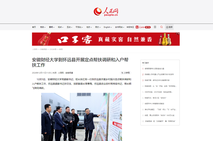 12月5日,人民网以《乐竞在线注册到怀远县开展定点帮扶调研和入户帮扶工作》为题,报道我校党委副书记、校长朱红军一行到到怀远县开展乡村振兴定点帮扶调研和入户帮扶工作。
