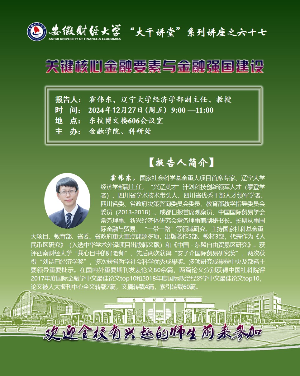 2024年12月27日:【“大千讲堂”系列讲座之六十七】关键核心金融要素与金融强国建设