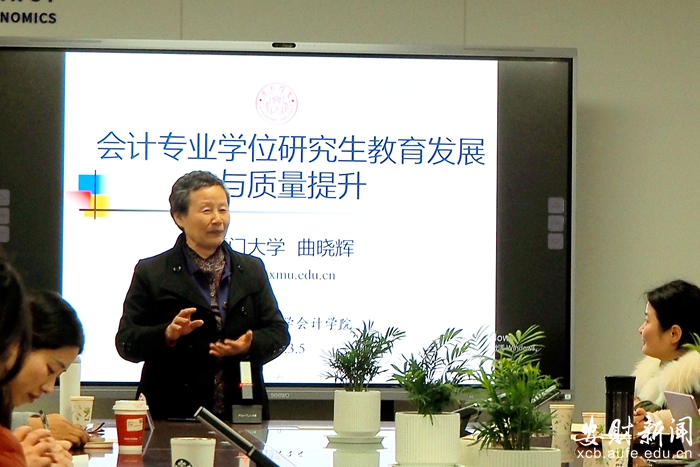 曲晓辉作了题为《会计专业学位研究生教育发展与质量提升》的报告。她介绍了我国会计专业硕士项目的发展沿革及质量认证的不同路径和所需条件,结合国外专业博士生的培养模式陈述了我国会计专业博士的培养目标,就学院会计专业硕士质量认证与专业博士学位点的申请准备工作提出了中肯建议。钱爱民作了题为《财务分析框架重构与智能化转型》的报告。她分析了传统财务指标分析的现实困境,运用典型案例阐述其教学理念及教学研究成果,分享了所在院校当前智能财务分析的课程建设情况。刘帅作了题为《智能财务:行业趋势与职业规划》的报告。她围绕智能财务的缘起、转型、发展趋势等内容讲述了所在企业的智能财务实践,结合自身求学工作经历及毕业生招聘经验,就当前人工智能时代企业需要什么样的会计人才、大学生应该锻炼提高哪些方面能力给出了诸多建议。