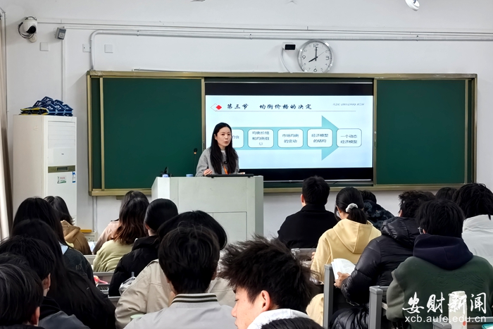 本次活动主讲教师为经济学院王甜老师,主讲内容为《微观经济学》课程中“均衡价格的决定”。王老师以线上讨论话题“新能源汽车补贴对市场价格的影响”为现实切入点,引导学生思考市场供给与需求的变动,并重点就“均衡价格和均衡数量”“市场均衡的变动”“经济模型的结构”三方面主要内容进行案例教学。参加活动的教师们普遍认为,课程观摩活动为青年教师搭建了展示自我和共学共进的平台,有利于进一步提高青年教师教学能力,提升课堂教学质量,弘扬良好校风和教风。
