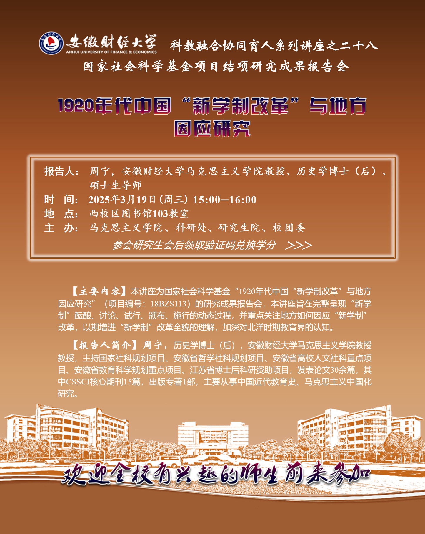 2025年3月19日:【科教融合协同育人系列讲座之二十八】1920年代中国“新学制改革”与地方因应研究