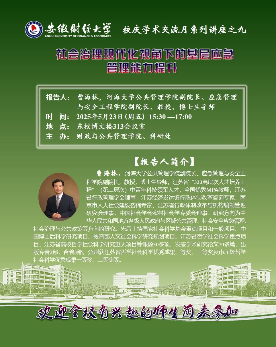 2025年5月23日:【校庆学术交流月系列讲座之九】社会治理现代化视角下的基层应急管理能力提升
