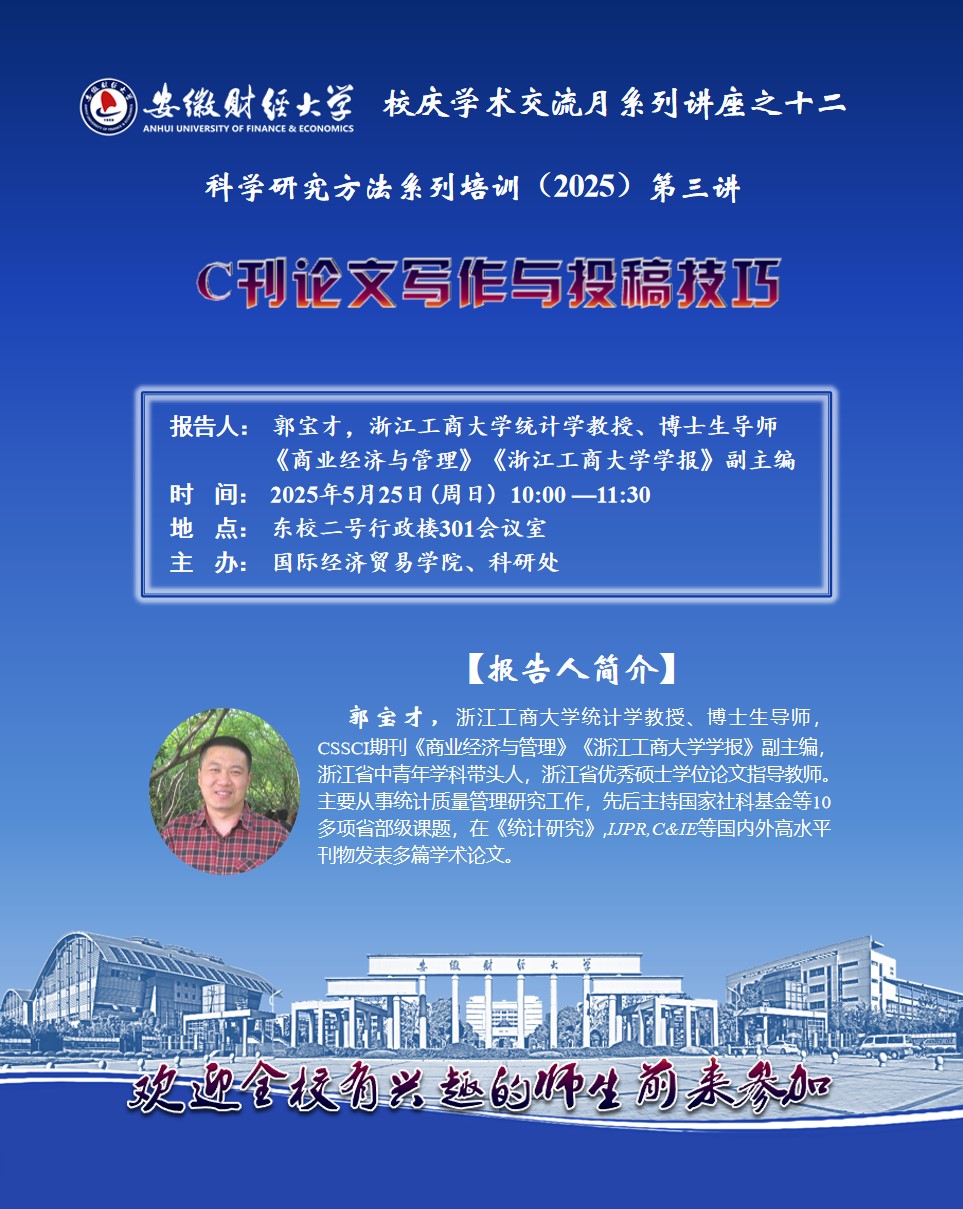 2025年5月25日:【校庆学术交流月系列讲座之十二】【科学研究方法系列培训(2025)第三讲】C刊论文写作与投稿技巧