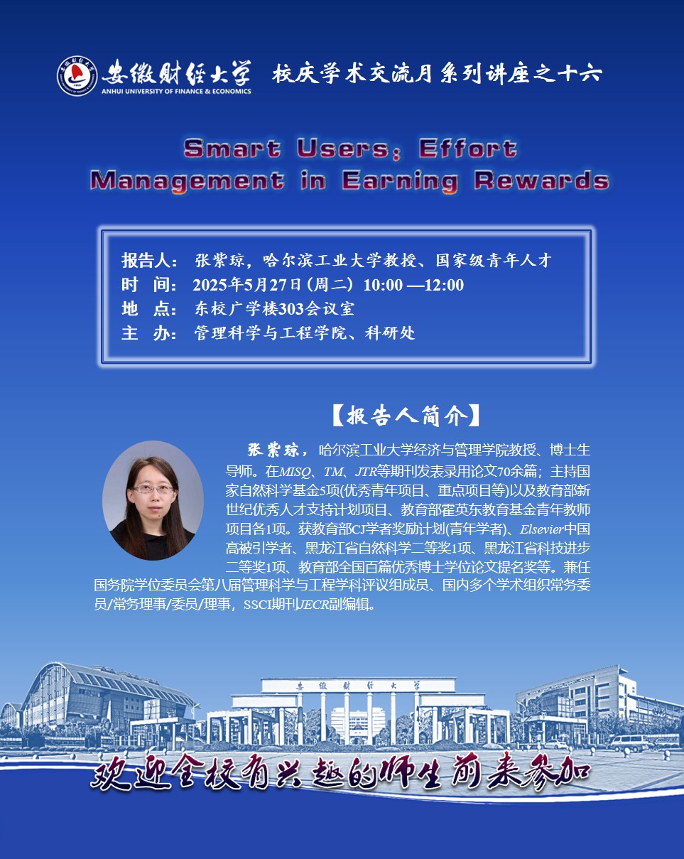 2025年5月27日:【校庆学术交流月系列讲座之十六】Smart Users: Effort Management in Earning Rewards