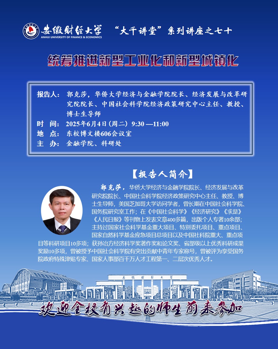 2025年6月4日:【“大千讲堂”系列讲座之七十】统筹推进新型工业化和新型城镇化