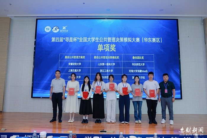6月7日至9日,由中国科学学与科技政策研究会主办,中国科学学与科技政策研究会公共管理专业委员会协办,河海大学公共管理学院承办的第四届“寻是杯”全国大学生公共管理决策模拟大赛(华东赛区)在河海大学(江宁校区)举办。我校财政与公共管理学院2023级莫奏磊、孙冉、李睿璇三位同学组成的“知行合一”小队历经公共管理方案设计、决策演练沙盘对抗、团队答辩三大环节的激烈角逐,从47支参赛队伍中脱颖而出,获华东赛区一等奖以及“最佳案例分析”奖,刘运青、高新宇老师获优秀指导老师奖。