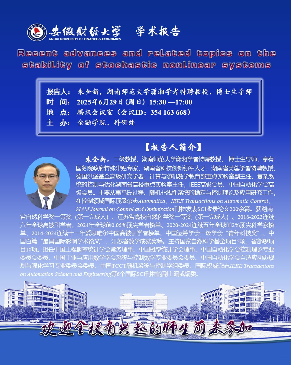 2025年6月29日:Recent advances and related topics on the stability of stochastic nonlinear systems
