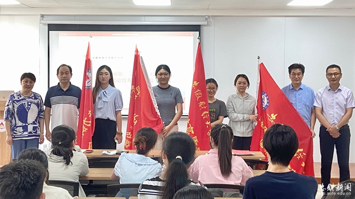 李刚宣读了校级重点团队立项名单,程修刚强调了安全等注意事项。与会老师们共同为专项团队代表授旗,专项指导老师朱道才教授从调研选题、数据搜集、团队分工、报告撰写等方面为参会学生做了专题辅导,历年暑期社会实践优秀学生做了经验分享。