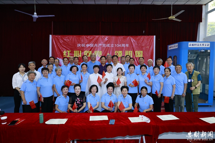 为庆祝中国共产党成立104周年,弘扬红色文化,展现我校离退休教职工永远跟党走的坚定信念,6月25日下午,离退休教职工党委在龙湖西校区教工活动中心举办“红心向党颂祖国”主题艺术党课。本次活动以艺术汇演形式讴歌党的光辉历程,抒发老同志对党的深厚感情。