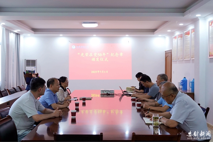在中国共产党成立104周年之际,为进一步传承红色基因,弘扬党的光荣传统,持续增强党员的荣誉感、归属感和使命感,7月1日上午,学校在离退休工作处会议室举行“光荣在党50年”庆祝活动。校党委常委、副校长储德银出席活动并讲话。2025年获得“光荣在党50年”的老党员,党委组织部、党委宣传部、离退休工作处相关负责人和工作人员参加活动。庆祝活动由离退休工作处副处长徐翠平主持。