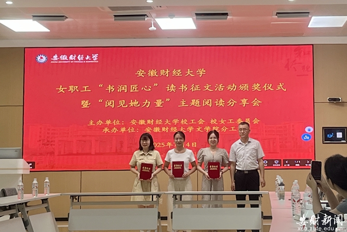 书香萦绕,芬芳四溢,智慧碰撞。7月4日下午,我校女职工“书润匠心”读书征文活动颁奖仪式暨“阅见她力量”主题阅读分享会在西校图书馆二楼智慧学习空间教室举行。此次活动由校工会、校女工委员会主办,文学院分工会承办。校工会主席蒋晓华,文学院党委副书记虞鲲,马克思主义学院党委副书记庄晓燕,校女工委委员、各分会女工委员及征文获奖人员参加了颁奖仪式及分享会。活动由校工会副主席胡春桃主持。