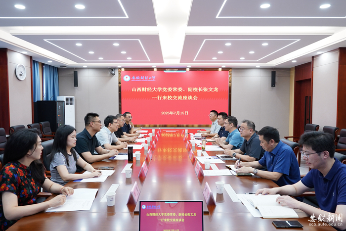 7月15日至16日,山西财经大学党委常委、副校长张文龙一行来我校调研交流。校党委常委、副校长宋马林出席并主持座谈会,国际交流中心、教务处、研究生院和低碳发展与碳金融实验室等部门负责人参加座谈会。