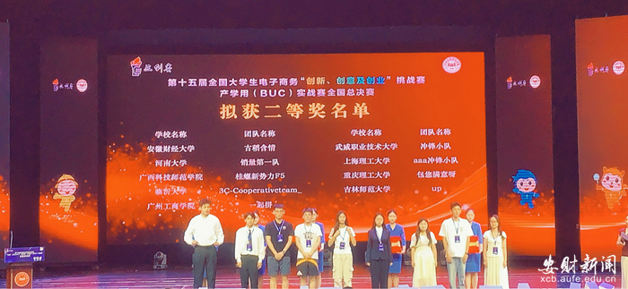 我校共有5支团队入围全国总决赛实战赛5个赛道的现场赛。经过激烈角逐,“点点红”队(高校指导教师:宗惠企业指导教师:李伟森、曹天浩)斩获乡村振兴赛道特等奖,“岁晏有余粮小队”队(高校指导教师:李大元、雷红生企业指导教师:张俊超、殷秀云)斩获新零售电商赛道特等奖,“商务分析小队”队(高校指导教师:李永发、蒋浩 企业指导教师:涂皖江)斩获商务大数据分析赛道一等奖,“请回答2025”队(高校指导教师:储德银、郑亚琴)斩获跨境电商赛道一等奖,“古稻含情”队(高校指导教师:张博、张超)斩获产学用(BUC)赛道二等奖。本次三创赛中,学校晋级国赛团队数和获奖总数均位列安徽省第一,获奖数量和等级均创我校在该赛事上的历史最好成绩。