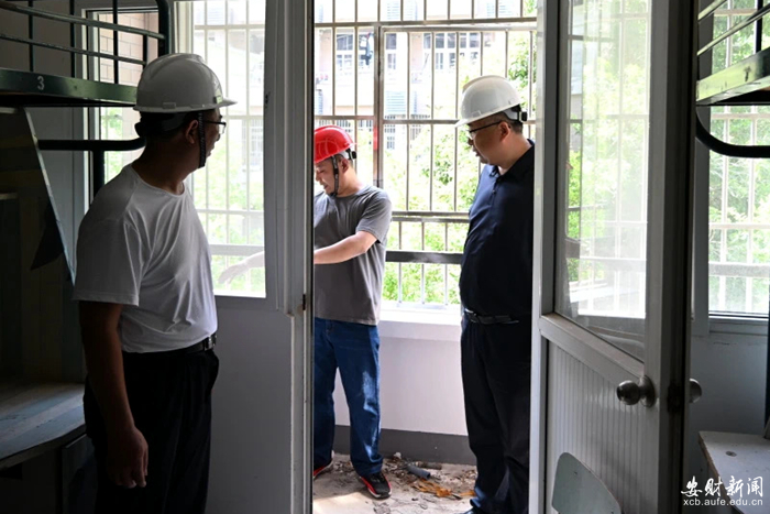 为推进暑期校园基础设施建设,提升新学期师生学习生活条件,8月14日上午,校党委常委、副校长孙小龙深入维修改造施工现场,实地考察维修重点项目进展情况。后勤管理服务中心、安全管理处相关负责人陪同调研。