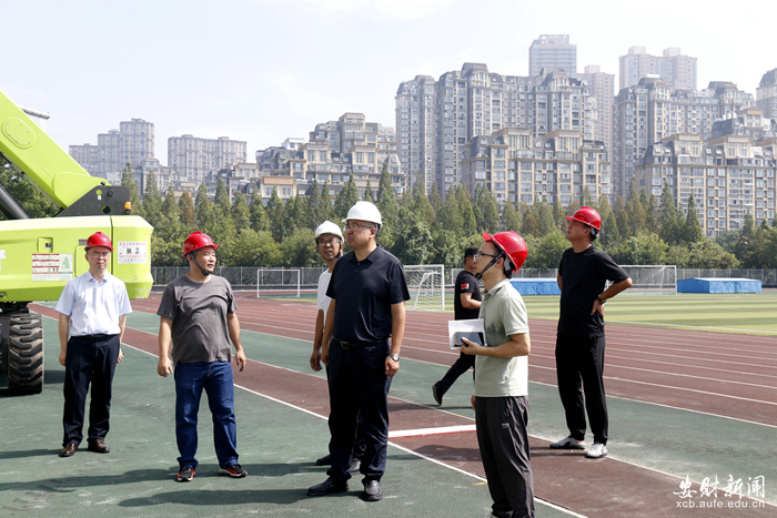 孙小龙一行实地察看了体育馆、田径场看台、学生公寓、南苑一站式学生社区等重点施工点位,详细了解工程进展,现场协调解决施工难题,并对工程质量、安全与进度提出指导意见。