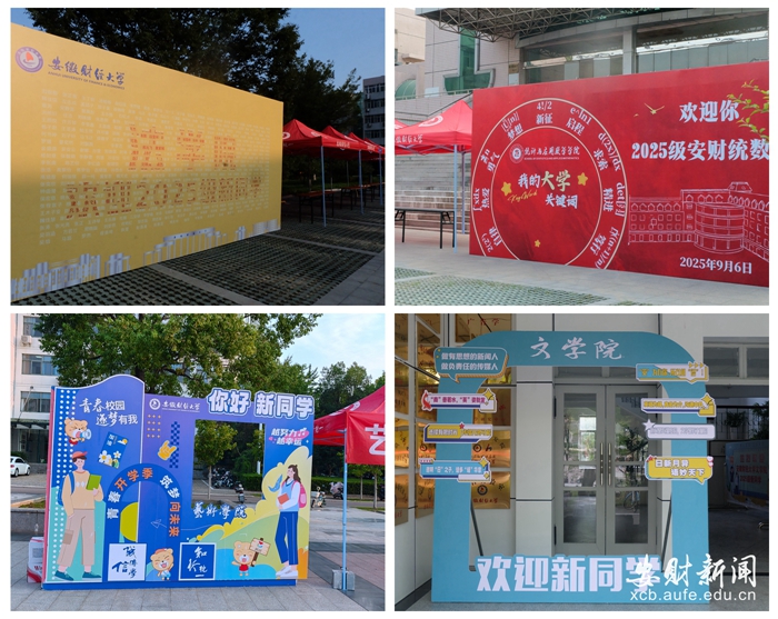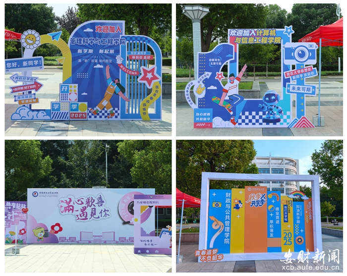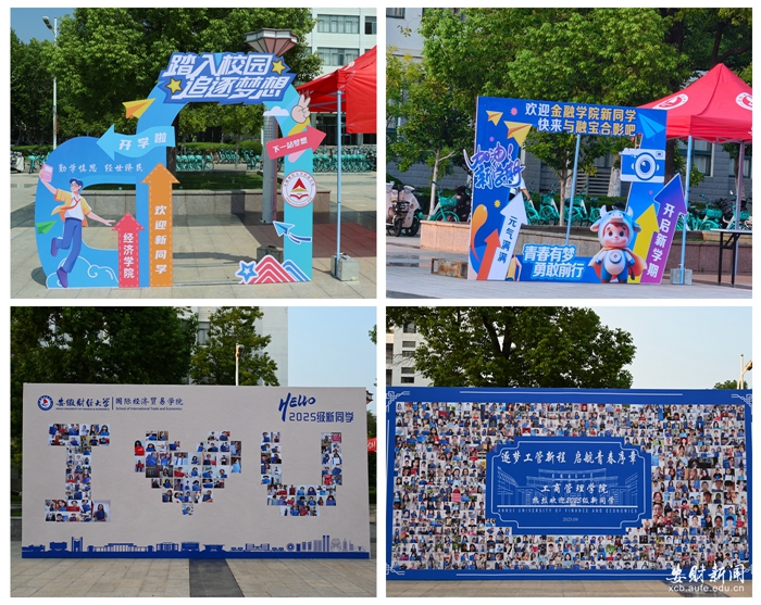 “嗨,新安财人!”各学院纷纷响应,用心营造初见的美好:设计感十足的签到咨询台、活力洋溢的互动展板、仪式感满满的入学纪念打卡点……定格你“第一次以安财人身份合影”的珍贵画面,为我们共同的安财记忆写下温暖的初章。