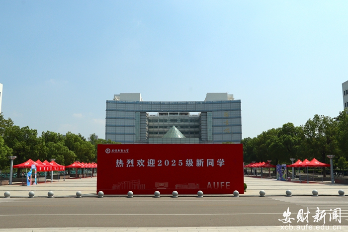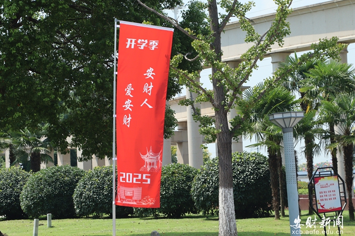 秋风轻拂林荫路,横幅舒展映日光。2025级新同学,我们在安财等你,奔赴这一场山海之约!