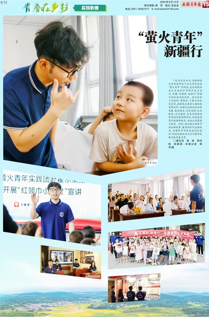 近期,《安徽青年报》15版以《“萤火青年”新疆行》为题,整版报道我校金融学院“萤火青年实践团”赴新疆开展“石榴籽 祖国行”新疆专项社会实践活动。现将全文转载如下: