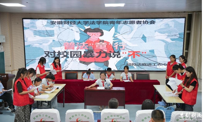 9月16日,法学院青协“雏菊”团队与蚌埠市龙子湖区工农小学合作开展了以“普法‘童’行,对校园暴力说‘不’”为主题的模拟法庭进校园活动。据悉,该项活动成果还将参与2025年度蚌埠市“平安青春”青少年模拟法庭大赛,借助大赛平台扩大校园暴力防治影响力,助力法治校园建设。
