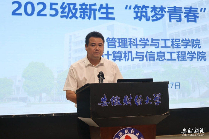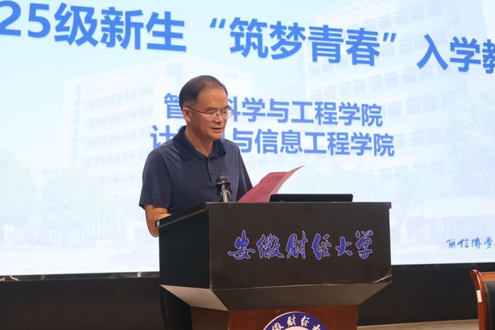 管工学院院长戴道明在讲话中表示,新生的加入为学院注入了新的活力。他向同学们提出四点要求:一是树立远大目标,做好学业规划;二是厚积薄发,打牢知识基础;三是锤炼思维,勇于创新突破;四是修身立德,实现全面发展。他希望同学们珍惜大学时光,善用学校资源,脚踏实地、勤奋学习,在安财这片沃土上书写精彩人生。