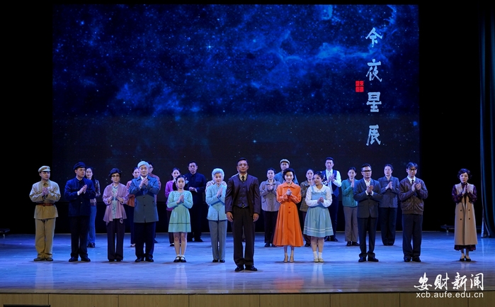 工商管理学院2024级学生杜文成激动地说:“今晚哭了好几次,郭永怀、李佩夫妇的故事让我深刻体会到什么是真正的家国情怀。作为新时代青年,我们应当传承这种精神!”金融学院2023级学生韩心羽哽咽道:“《今夜星辰》让我倍受感动,前辈们的精神之光永远明亮,正指引着我们这一代人勇毅前行,愿我们都能成为这个时代发光发热的新星!”艺术学院2024级学生任韦妙表示,伟大的事业源于对家国最深沉的爱,或许我们无需经历那般艰苦卓绝,但剧中传递的奉献精神与家国情怀,依然是指引我们前行的宝贵精神财富。马克思主义学院教师马海磊激动地表示,话剧《今夜星辰》把郭永怀、李佩夫妇的故事搬上舞台,不仅是一场艺术盛宴,更是一堂直击灵魂的思政教育示范课,为教育引导新时代大学生弘扬传承伟大爱国主义精神提供了鲜活生动的教育素材。老一辈科学家以血肉之躯托举民族复兴,让我们再次体悟思政课教师的使命——既要仰望科学星辰,更要播撒精神火种,让思政课更加具有温度与生命力,让青春在爱国奉献中熠熠生辉。