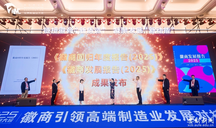 9月20日下午,2025世界制造业大会徽商引领高端制造业发展对接会在合肥举办。安徽省人大常委会党组成员、副主任韩军出席并致辞。对接会以“链接徽商‘新质造’,凝聚发展‘新动能’”为主题,全国各地徽商商会、企业家代表及专家学者等出席会议。由我校新徽商研究中心主任、工商管理学院教师王唤明博士领衔编著的《徽商发展报告2025》在会上正式发布。