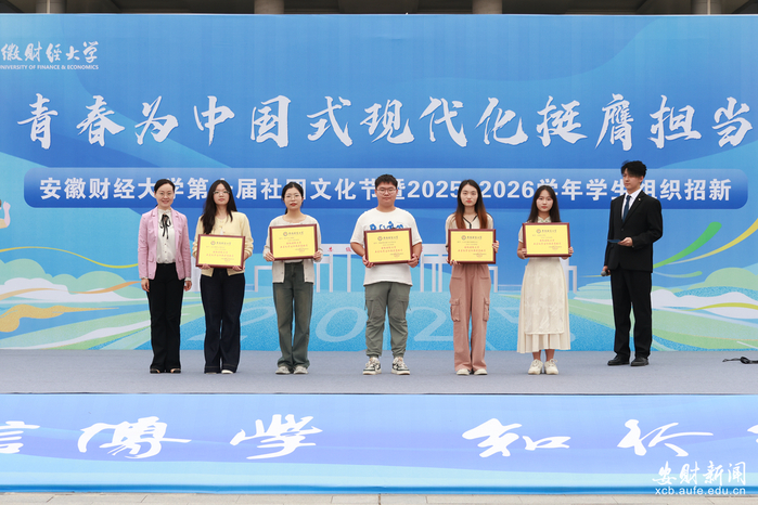 2024-2025学年,多类社团凭借特色活动与突出贡献获评五星级社团:志愿公益类社团绿次方公益社积极践行公益理念,学术科技类社团企业模拟运营协会、大学生数学建模协会、物联网创新与应用协会深耕专业领域,文化体育类社团龙湖文学社则以文化传播为核心,这些社团通过承办各类高水平竞赛,持续丰富校园文化生活、服务师生成长需求。陈莉为五星社团代表逐一颁发奖牌,并指出社团既是校园文化建设的“活力源泉”,更是引导青年学子践行中国式现代化使命的“实践课堂”;她希望各类社团以此次文化节为契机,紧扣“五育并举”育人目标,将社团特色、专业所长与时代需求深度融合,让青春力量在为中国式现代化挺膺担当中绽放光彩。