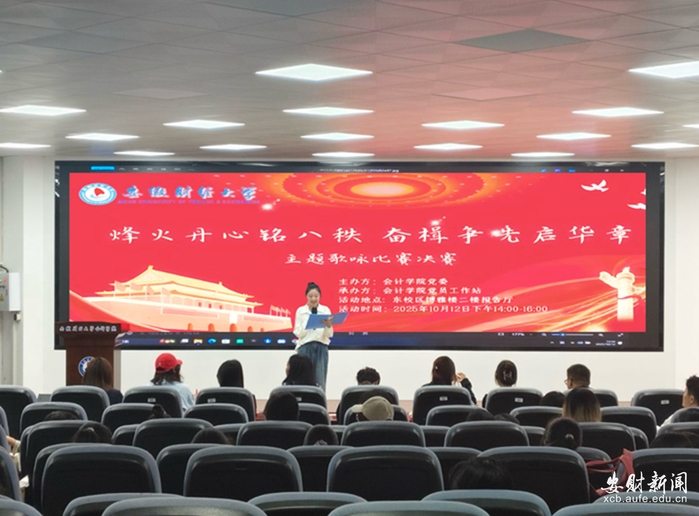 为推动爱国主义教育走深走实,激励新时代青年以史为鉴、勇担使命,2025年10月12日下午,由会计学院党委主办,会计学院党员工作站承办的“烽火丹心铭八秩,奋楫争先启华章”歌咏比赛决赛在博雅楼二楼报告厅举办。本次比赛旨在通过生动丰富的形式,增强全院学生的集体荣誉感和历史使命感。经过初赛环节的激烈比拼,最终有3支团队和7位个人凭借出色的表现脱颖而出,晋级至决赛舞台,继续绽放他们的活力风采。决赛现场,选手们以满含热忱、铿锵有力的歌声开启了比赛的帷幕,收获了在场观众的声声喝彩与由衷赞赏。他们的出色呈现不仅彰显了会计学院学子锐意进取、斗志昂扬的精神状态,更点燃了同学们坚守初心使命、弘扬优良传统、主动向先进看齐的热情与信念。他们用实际行动诠释了承载时代使命、为实现中华民族伟大复兴而砥砺前行的崇高志向。