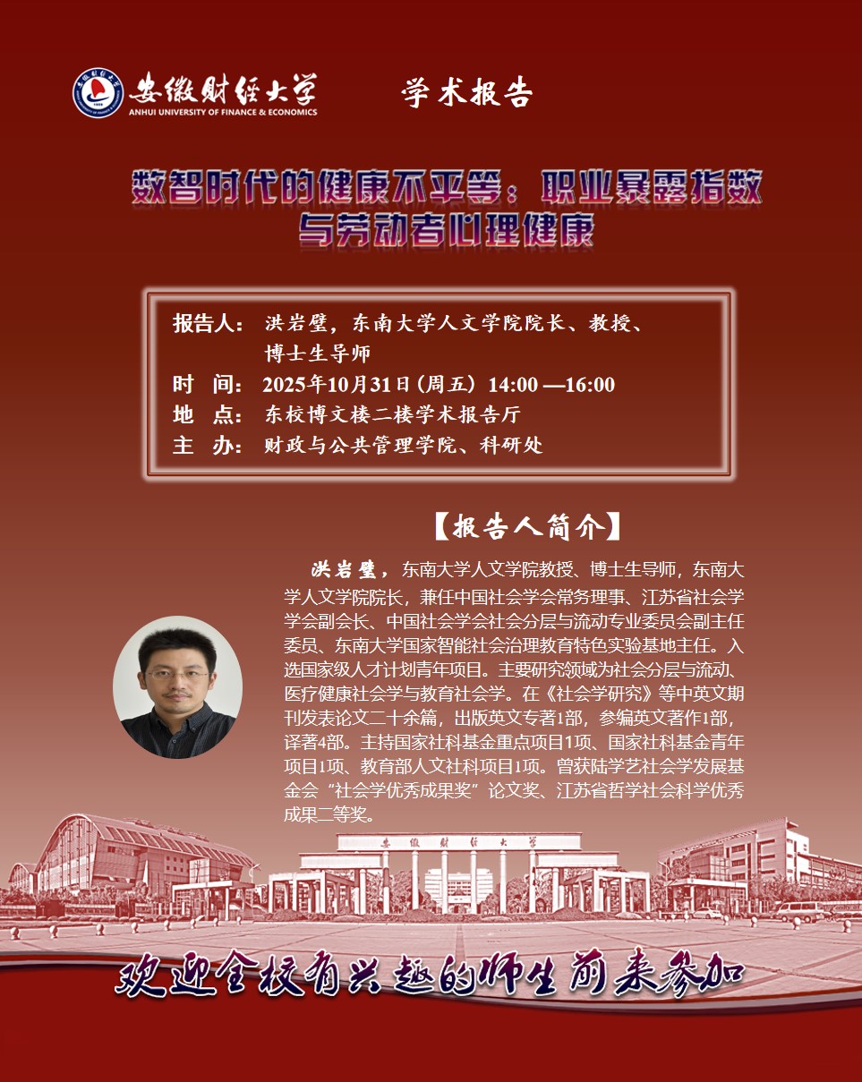 2025年10月31日:数智时代的健康不平等:职业暴露指数与劳动者心理健康