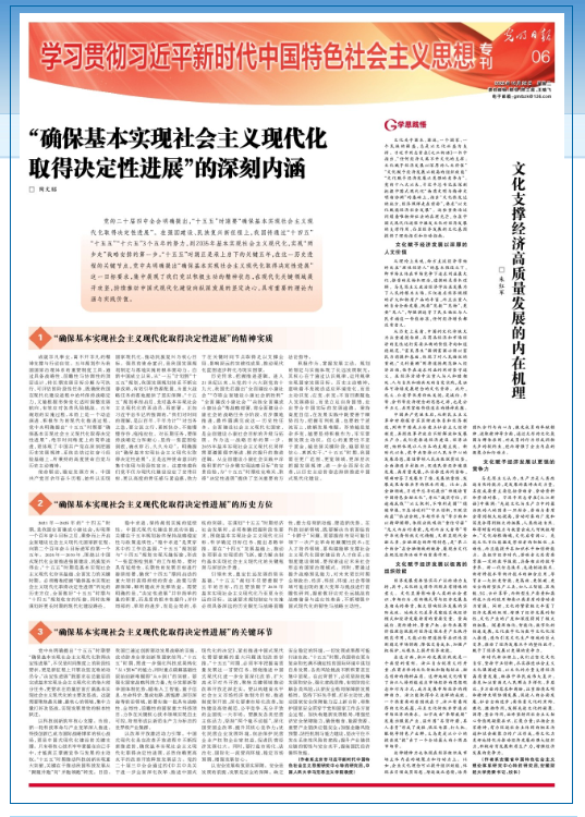 马克思主义认为,生产力是人类改造自然的能力,是发展的最终决定力量,其组成要素主要包括劳动者、劳动资料和劳动对象。习近平同志曾在《之江新语》中强调:“先进文化与生产力中的最活跃的人的因素一旦结合,劳动力素质会得到极大地提高,劳动对象的广度和深度会得到极大的拓展,人类改造自然、取得财富的能力与数量会成几何级数增加。”文化培根铸魂,文化启智润心。先进文化不仅能激发劳动者的积极性、主动性,而且能提升其知识水平和创新能力。在数字经济时代,劳动者尤其需要掌握一定的数字技能,具备相应的数字素养。新一代信息技术、先进制造技术、新材料技术等新兴技术的融合应用,孕育出一大批更智能、更高效、更低碳、更安全的新型生产工具,如人工智能、区块链、5G、云计算等,而新型生产要素和高科技工具的使用都要以高素质的劳动者为前提。同时,文化的繁荣极大丰富了经济发展的纵深、增强了经济发展的韧性,文化产业的广度和深度得到了极大的拓展。随着网络化、智能化、数字化的快速发展,文化数字化与数字文化化深入推进,进而引发文化生产领域的巨大变革,推动了经济发展水平的整体跃升,赋予了经济发展以更强的竞争力。